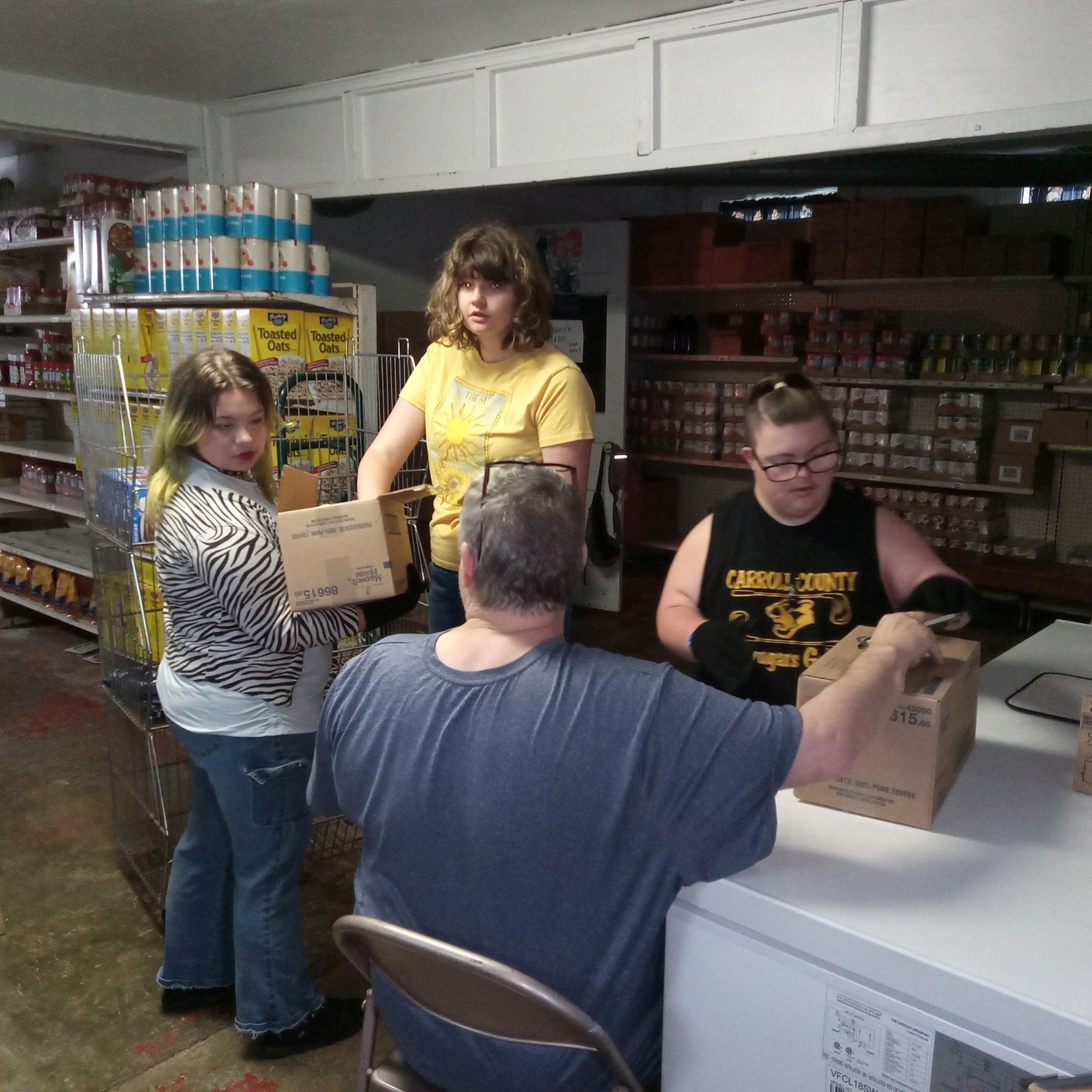 This summer, six dedicated students from the Carroll County Board of DD’s Job Exploration Training (JET) Program made a big impact in our community. Over six weeks, they volunteered at the Northeast Jefferson County Food Pantry at Trinity Presbyterian Church, helping sort and stock an incredible 23,000 pounds of food. Along the way, they picked up some super useful skills like using the office copier, keeping things clean and organized, filling food orders, and learning about food safety and how to rotate stock.