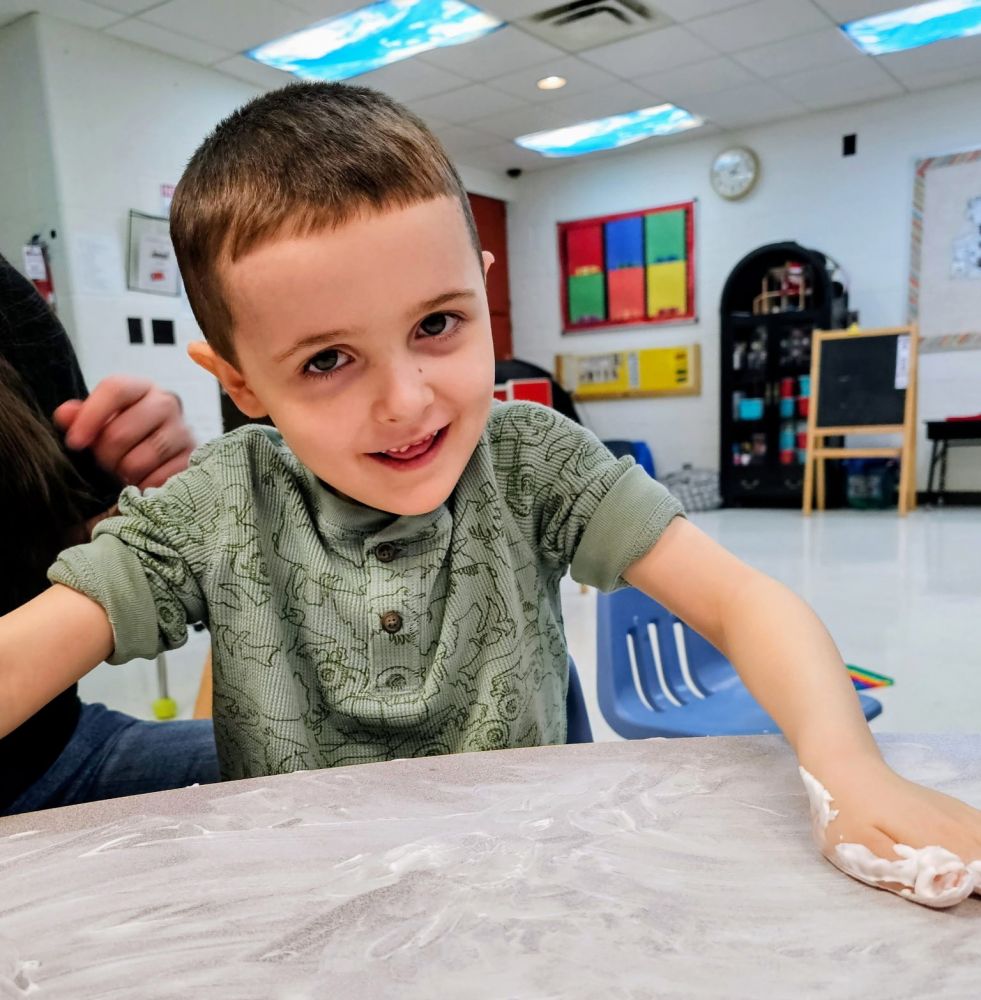 Kamden is a delightful student who has grown so much this year! He is a sweet boy who has endeared himself to everyone in the class. He now participates fully in classroom activities and demonstrates strong problem‑solving skills, often noticing details that others overlook. He is beginning to write his name on his own and does a great job when the class uses shaving cream to practice our letter writing. Kamden is so kind to his friends and treats them with kindness. He absolutely loves science time and is often creating and exploring science even during his small breaks throughout the day. He also loves music and entertains all of us with his singing. The staff often say how they keep singing Kamden’s songs even when they aren't at school. We are grateful to have Kamden in our class and appreciate the enthusiasm and curiosity he brings each day.